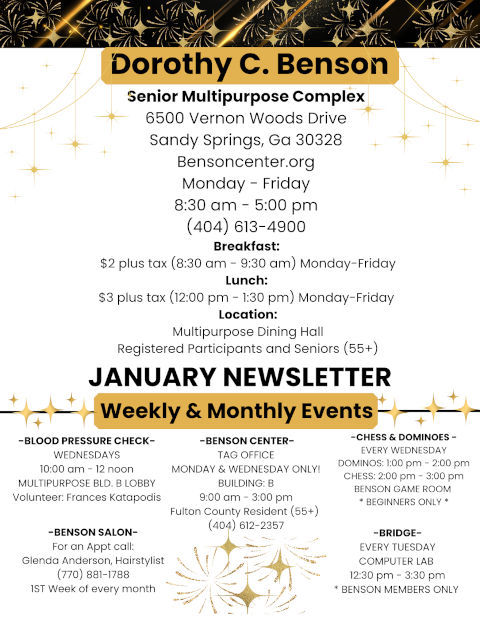 The Dorothy C. Benson Senior Multipurpose Complex, commonly referred to as The Benson Center, serves North Fulton County residents through three distinct levels of services for independent, semi-independent and semi-dependent individuals. At the Benson Center you will find informative classes and programs to enhance your life and keep you socially active and healthy.